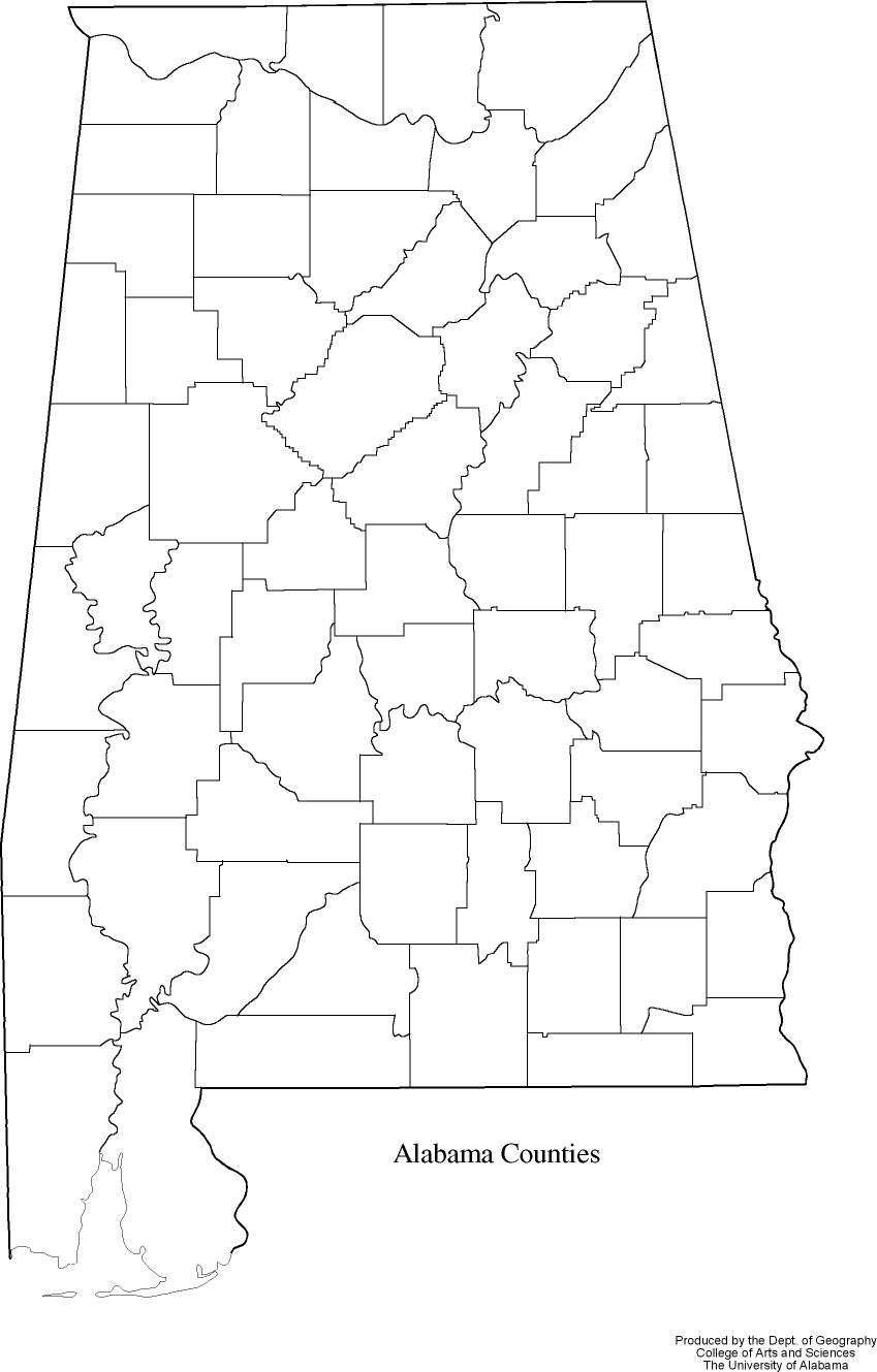 Alabama Counties Map Blank PDF with Names