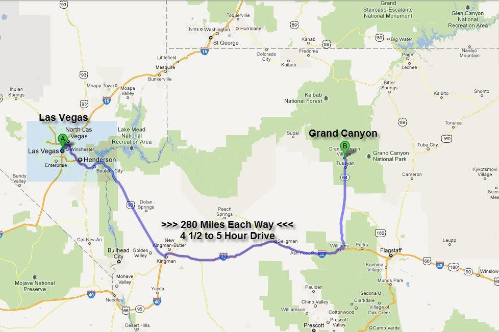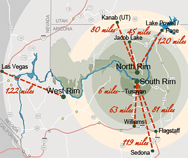 Map of Grand Canyon and Surrounding Cities