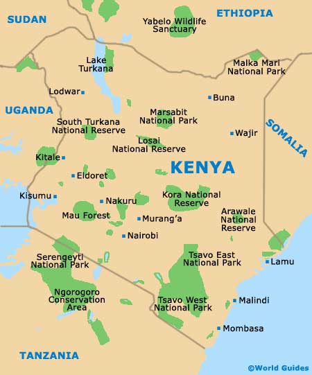 Kenya was founded back in 1964 it is the part of the eastern Africa which is now known as Kenya. In Map of Kenya there is one party state which means that there is only one party in the state and Kenya was ruled by Kenya African national union which is led by jomo Kenyatta during 1963 to 1978. After Kenyatta the place was taken by Daniel arap moi, who ruled the Kenya till 2002 and he tried to change one party system to de jure status in 1980s but failed in it due to cold war. Capital of Kenya is Nairobi which is located in the south central part of the country. Kenya is also known as republic of Kenya. Kenya is located in the eastern coast of Africa. Kenya lies across the equator and total area of Kenya is 11,230 sq. km.